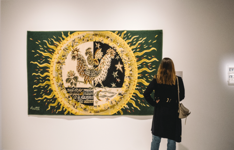 Accompagné·e·s d'un·e guide, partez à la découverte de l'exposition temporaire "Tisser son temps" : clés de lecture, pistes et nouvelles connaissances vous sont proposées !