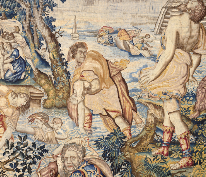 © Le Déluge, tenture de La Vie de Noé, Bruxelles, Paul Van Nieuwenhove, vers 1628-1640, d’après les cartons de Michel Coxcie, tapisserie de lisse, laine et soie, 338 × 387 cm.