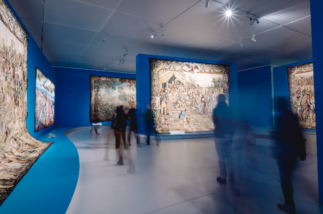 L’exposition "Tisser son temps" rassemble des artistes qui mélangent des éléments historiques, actuels et imaginaires pour créer des scènes ensuite produites en tapisserie. Celles-ci nous parlent de questions de société centrales, de l’époque médiévale à aujourd’hui.